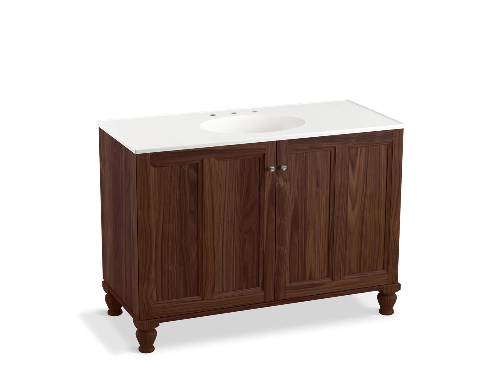 With smart use of storage – from medicine cabinet to shower – and a calming color palette, this bathroom creates a welcoming feel that would match nearly any home style. It pairs timeless, classic faucets and accessories with rich, natural-looking surfaces.